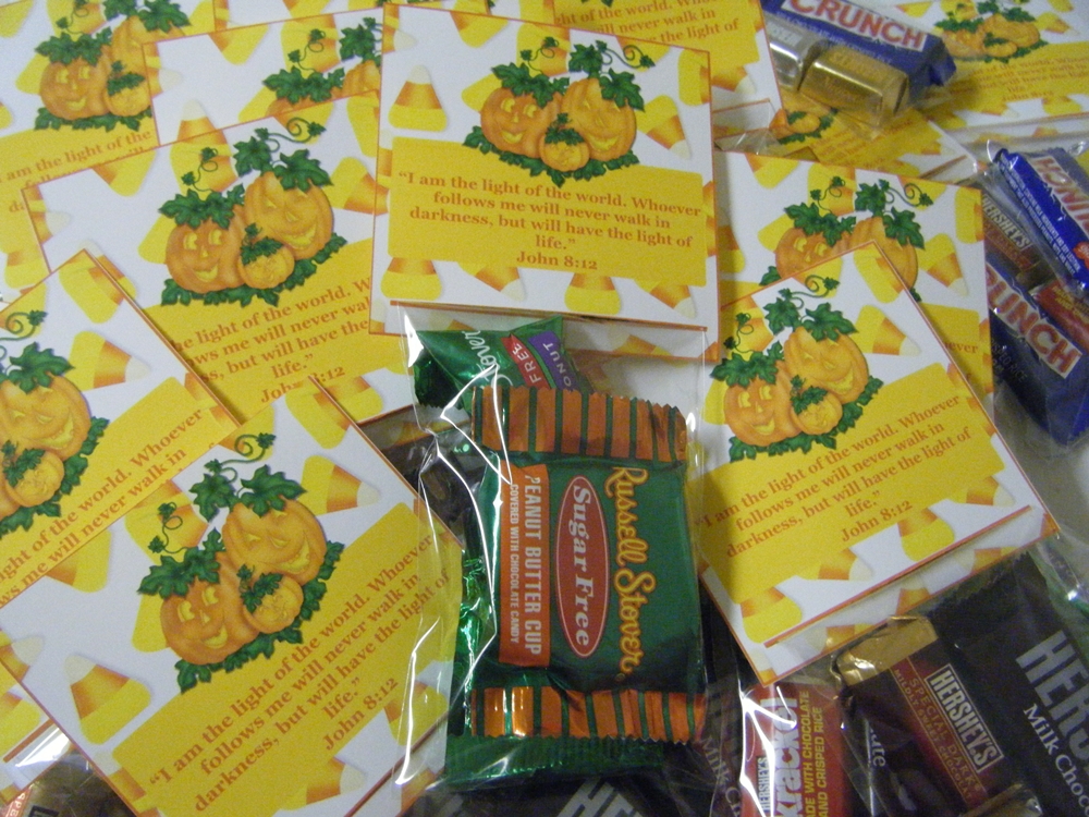 Did up a bunch of these bag toppers and put a few pieces of candy in a bag.. Cut the pumpkin face with the Pumpkin carving Cricut cart.